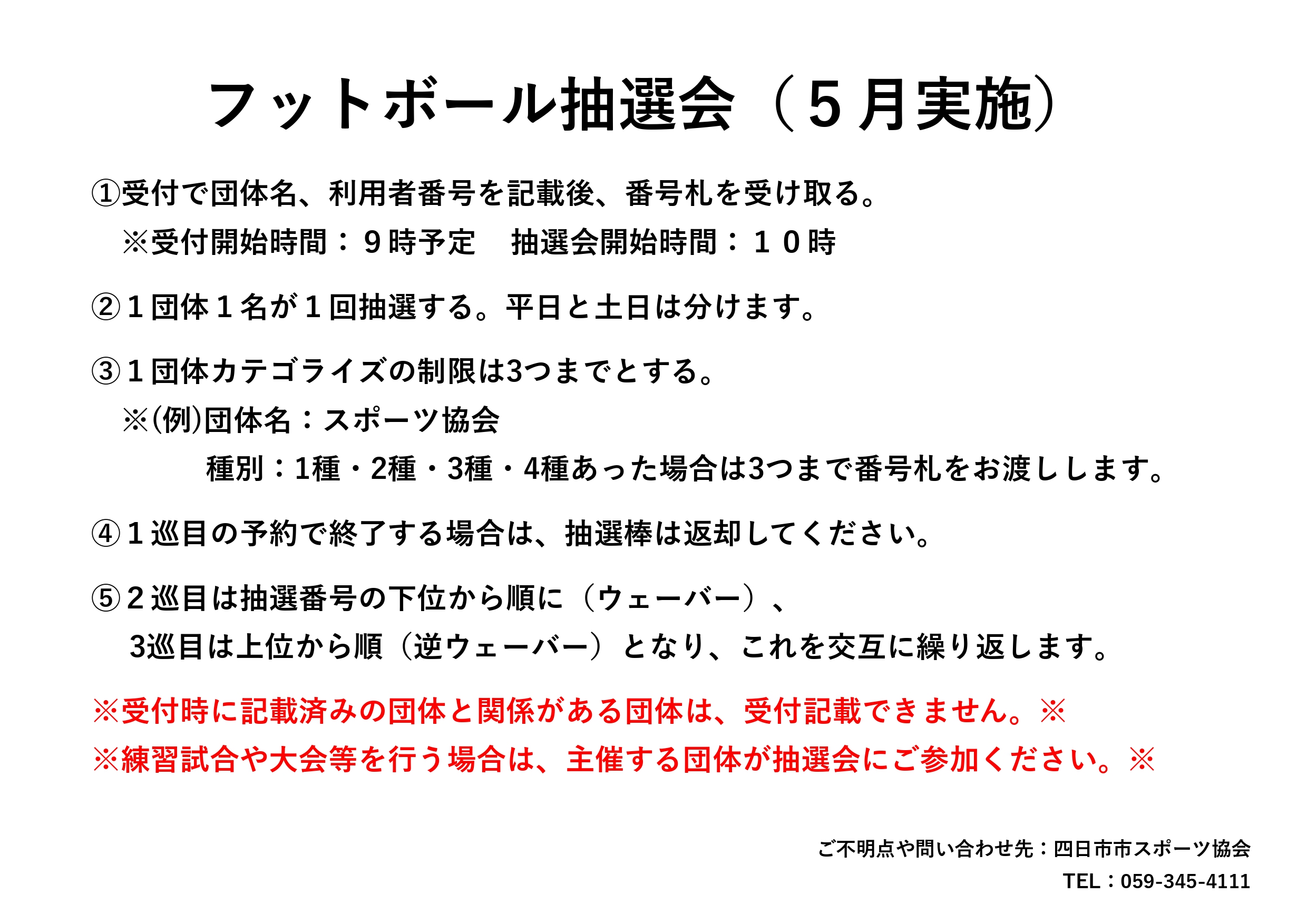 フットボール場抽選会 5月より抽選方法変更のお知らせ